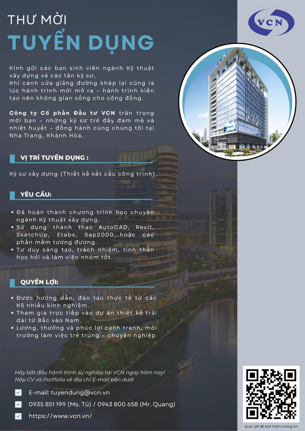 [Tuyển dụng] Công ty Cổ phần Đầu tư VCN tuyển dụng vị trí kỹ sư và kiến trúc sư